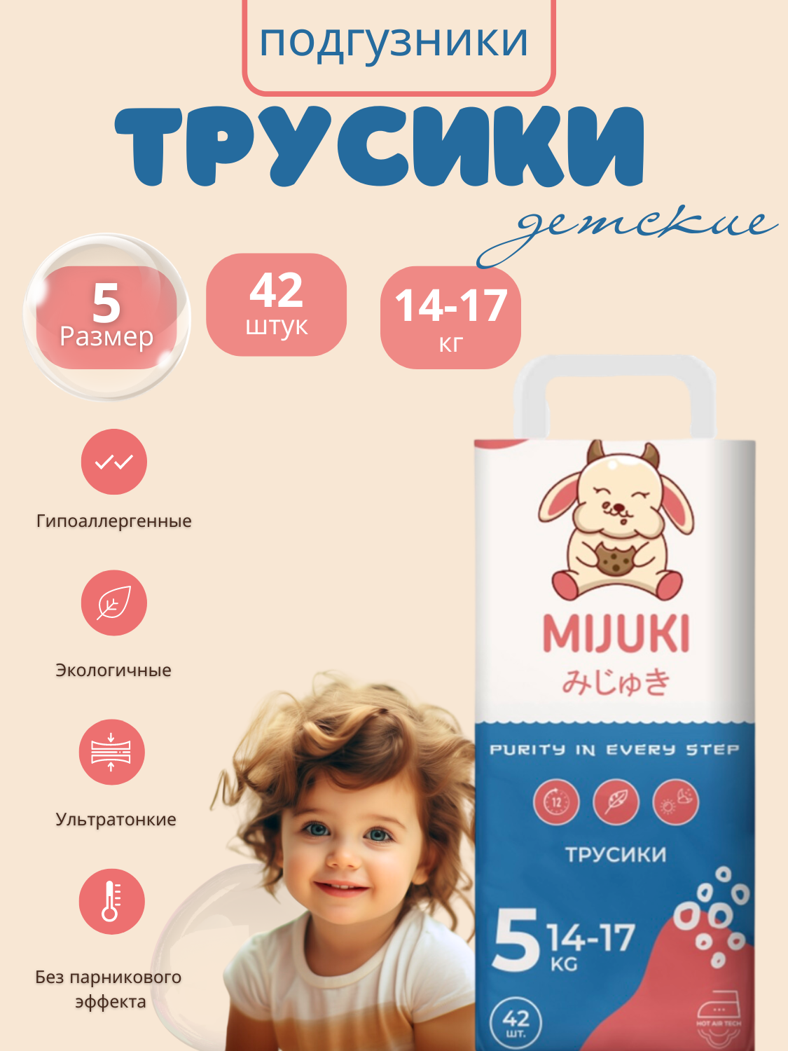 Трусики-подгузники легко снимаются и надеваются как обычные трусы. Идеальны для детей, которые уже начинают ходить.