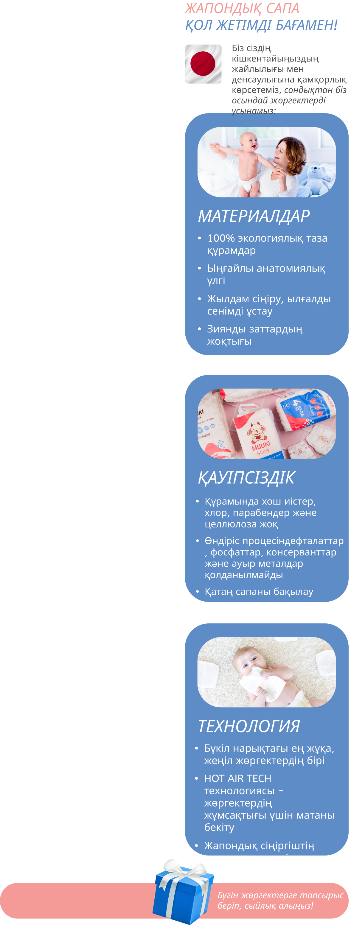 Бір пакеттен жалпы пайда Подгузник: 1000 теңге (маржа) + 224.5 теңге (бонустар) = 1224.5 теңге Подгузник-трусик: 1000 теңге (маржа) + 244.5 теңге (бонустар) = 1244.5 теңге